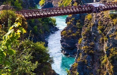 번지점프 브릿지퀸스타운 최고의 명소이자, 많은 관광객들이 퀸스타운을 찾는 이유 중 하나가 바로 세계에서 가장 오래됐으면서도 무사고를 자랑하는 이 번지점프이다. 직접 뛰는 짜릿한 경험도 좋겠지만, 43미터 높이에서 제각각의 포즈로 뛰어내리는 도전자들을 보는 것만으로도 충분히 재미있는 명소이다.