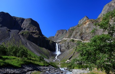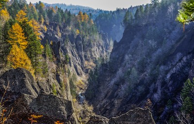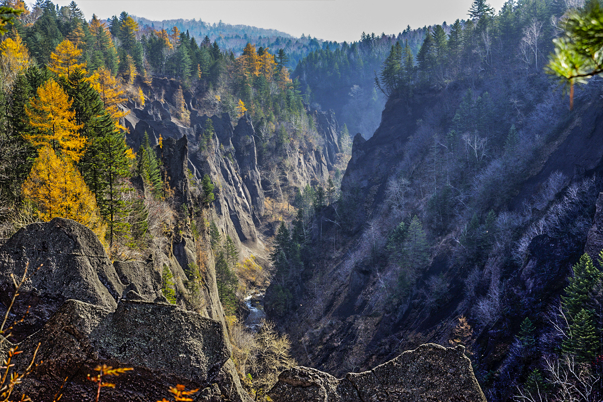 ▶천지가 용암을 분출하여 만들어낸 V자 형태의 금강대협곡