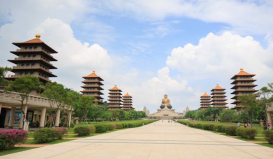 1) 불광사: 대만 최대의 불교 성지다. 내부에는 백의관음과 1만체의 관음보살상을 안치한 만불대비전(萬佛大悲澱),대웅보전,높이 36m인 대만 최대의 접인대불이 있는 불상전이 있다. 불교 대학과 불교 문물 진열관이 있고, 사원 측에서도 자유로이 견학할 수 있도록 배려하고 있어, 불교 신자만이 아니라 일반 관광객도 찾아 볼 만한 곳이다. 또한 접인대불상의 근처에서 내려다보이는 하담수계(下淡水溪)의 전망도 훌륭하다.