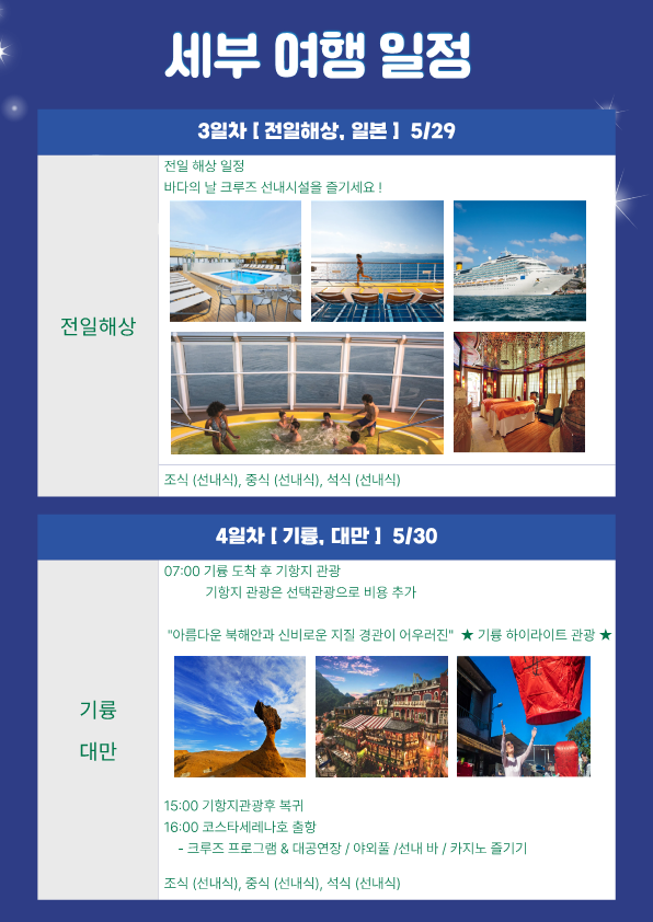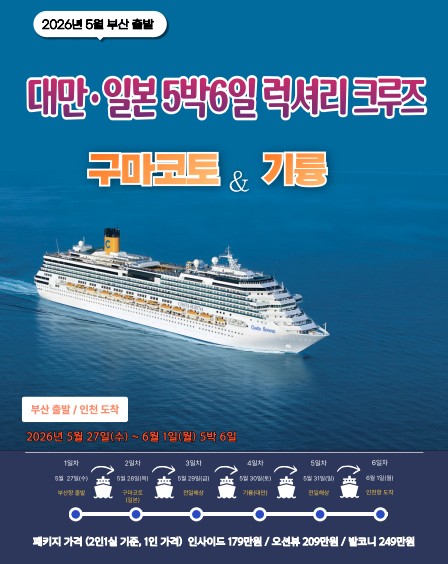 2026년 5월27일~6월1일 대만·일본 5박 6일 “바다 위에서 시작되는 가장 품격 있는 여행” [럭셔리 크루즈|구마모토·기륭|부산출발/인천도착]